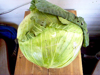 The Lord's many Blessings, and for example this cabbage head that's what! It's GINORMOUS!! The picture in NO way does this thing justice let me tell ya! So, not only am I grateful for the HUGE cabbage head, but that it was given to us for FREE!! Yes FREE!! A guy at church gave it to us--just gave it to us! He grew these himself and they were ALL this big!! It's like cabbage on steroids!ha Needless to say we will be busy for a while "working" this bad boy up! blessings. Thanks Lord!